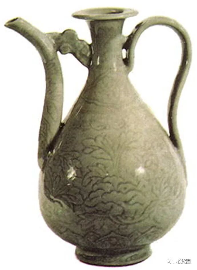 在元代采用沸水直接冲泡散形条茶饮用的方法已较为普遍,这不仅可在不少元人的诗作中找到依据,而且还可从出土的元冯道真墓壁画中找到佐证。在图中,没有茶碾,当然也无须碾茶,再从采用的茶具和它们放置的顺序,以及人物的动作,都可以看出人们是在直接用沸水冲泡饮茶。用于点茶用的元影青的刻花执壶。