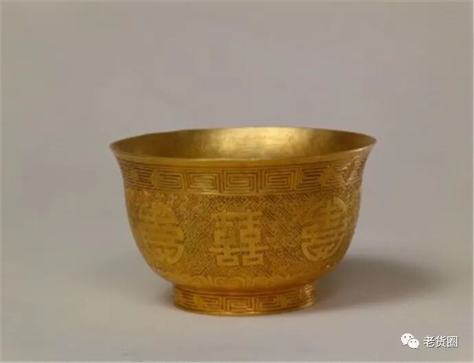 清同治金錾花双喜圆寿茶碗