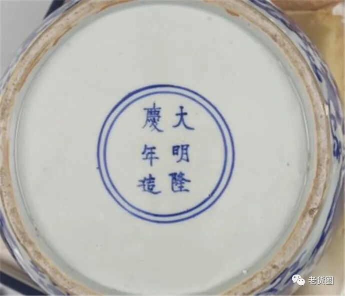其时青花图案除团龙纹外,还有团鹤、团螭、团凤、团花等,山石、鱼藻、花鸟等也常见。穆宗隆庆只有六年,青花瓷器的制品较少。这件提梁壶带有隆庆本朝款识,是目前国内仅存的珍品之一。