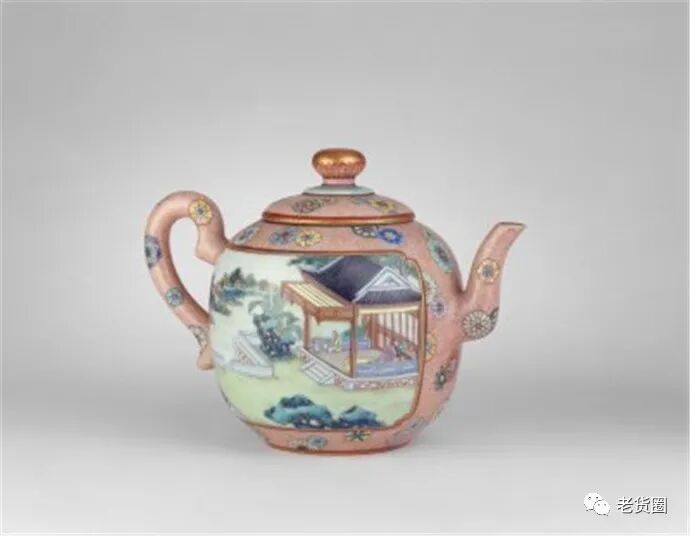 清 乾隆粉彩开光人物茶壶