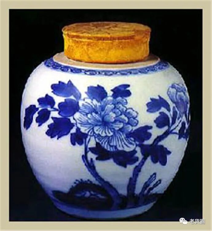 这件青花瓷罐,是茶叶的贮藏器,瓷罐上绘有青花牡丹纹饰。牡丹花的花头采用“白描”手法勾勒,茎、叶采用勾线后填色方法,填色层次清楚、浓淡鲜明。贮茶瓷罐上,硕大丰润的花型,优雅丰富的青花蓝色色泽,使人似乎闻到浓郁的幽香,给人以美的享受。此罐为清末景德镇民窑生产。