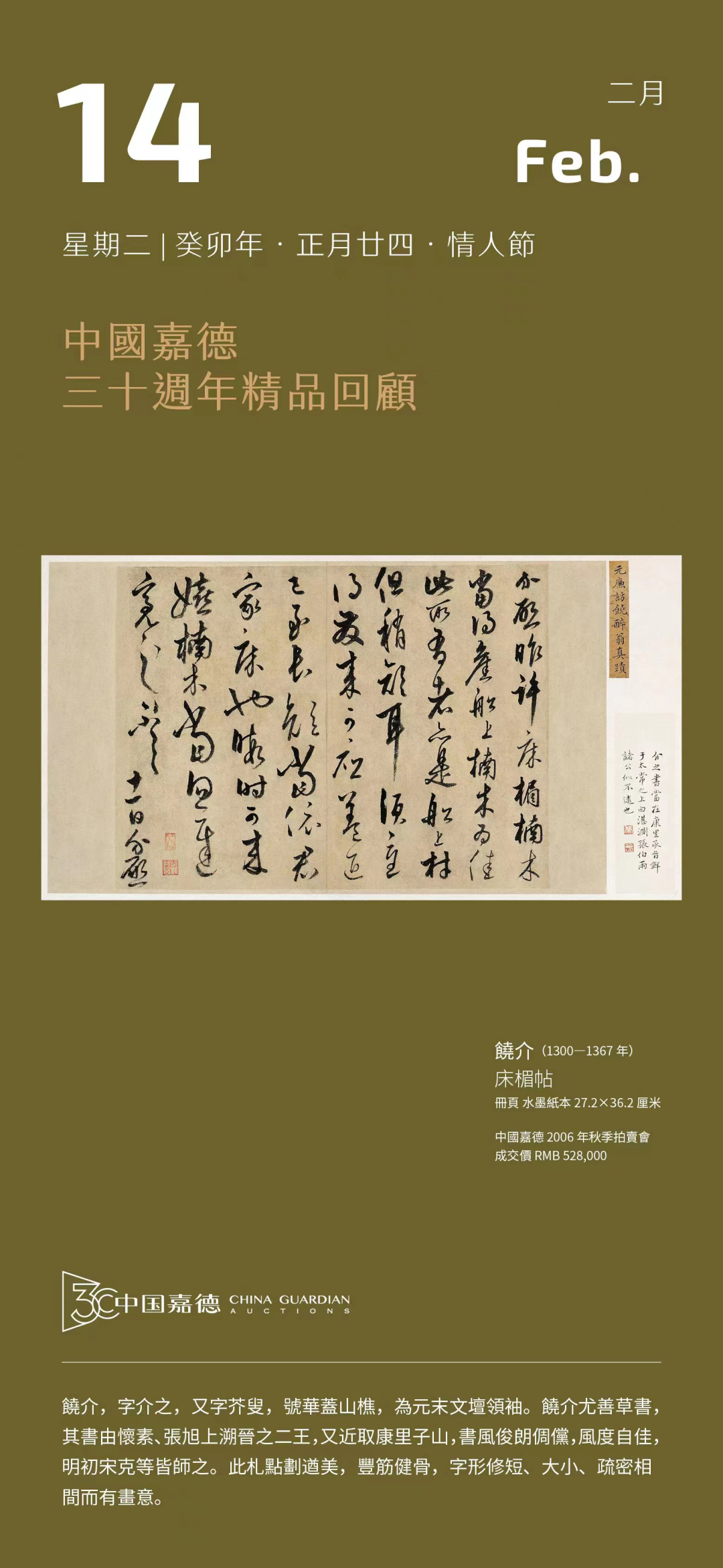 2月14日:饶介 床楣帖丨中国嘉德30周年精品回顾