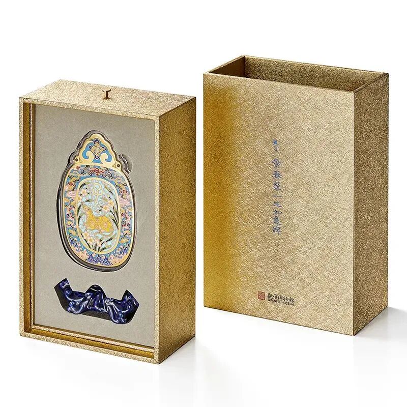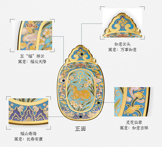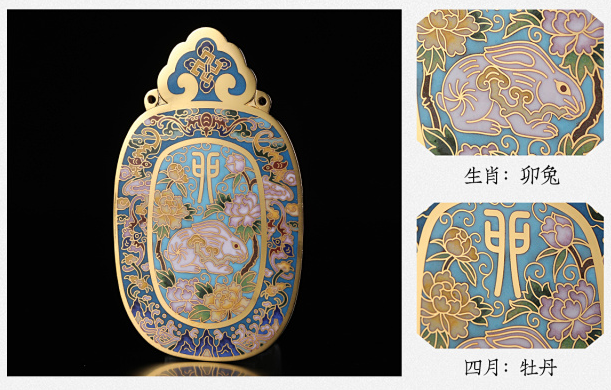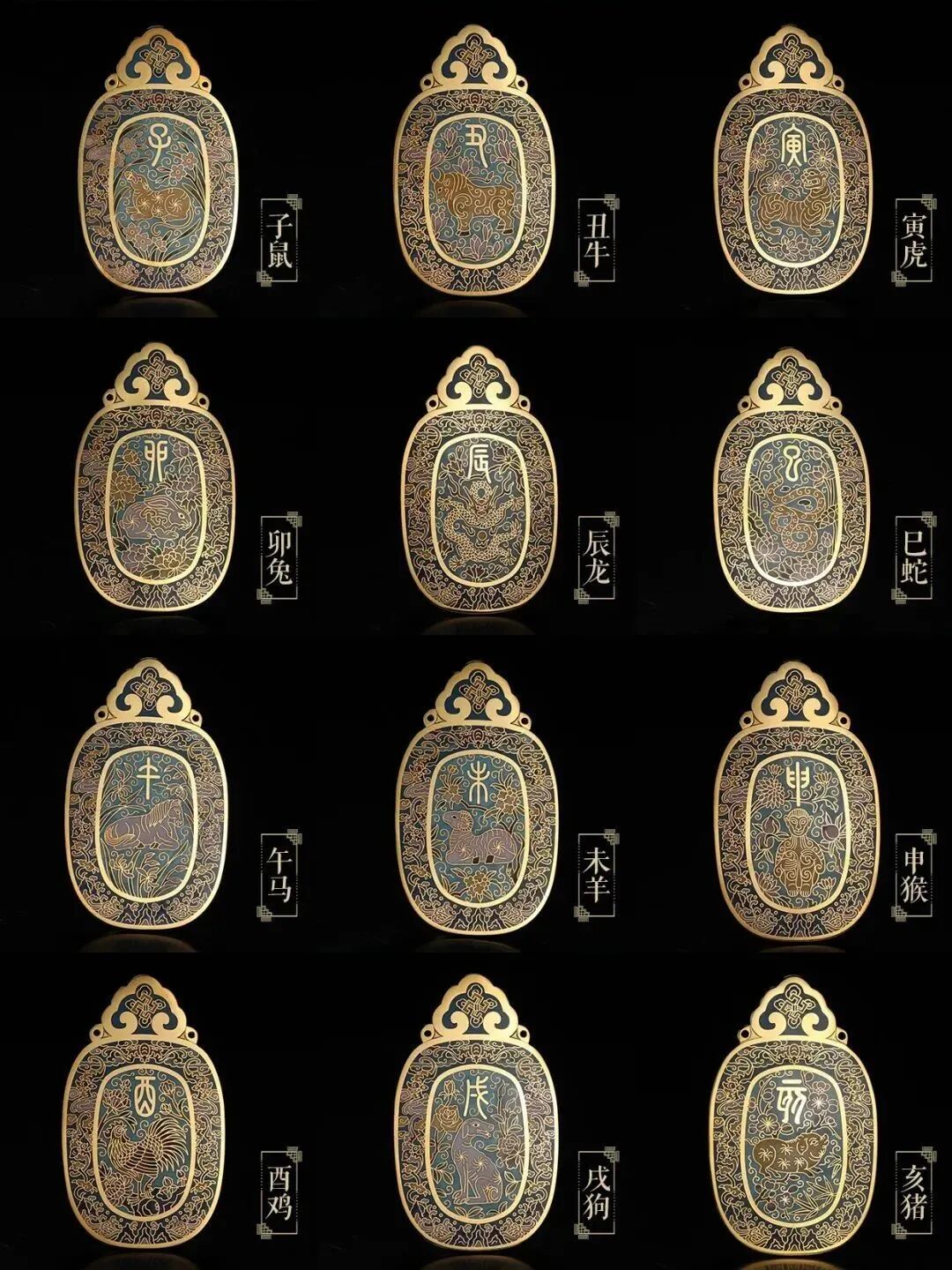 此「景泰蓝十二生肖一生如意牌」以馆藏【清乾隆 太上皇御赐养老银牌】为整体造型的灵感来源。