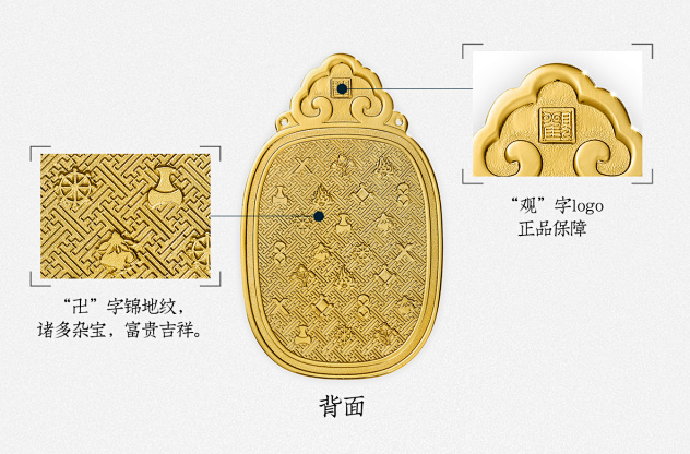 背面,以锦地纹满铺,内嵌诸多杂宝,寓意富贵吉祥。