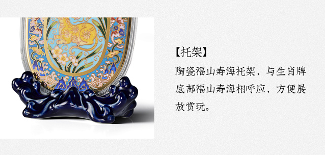 另外,搭配一陶瓷福山寿海托架,与生肖牌底部福山寿海装饰相呼应,寓意福如东海,寿比南山。