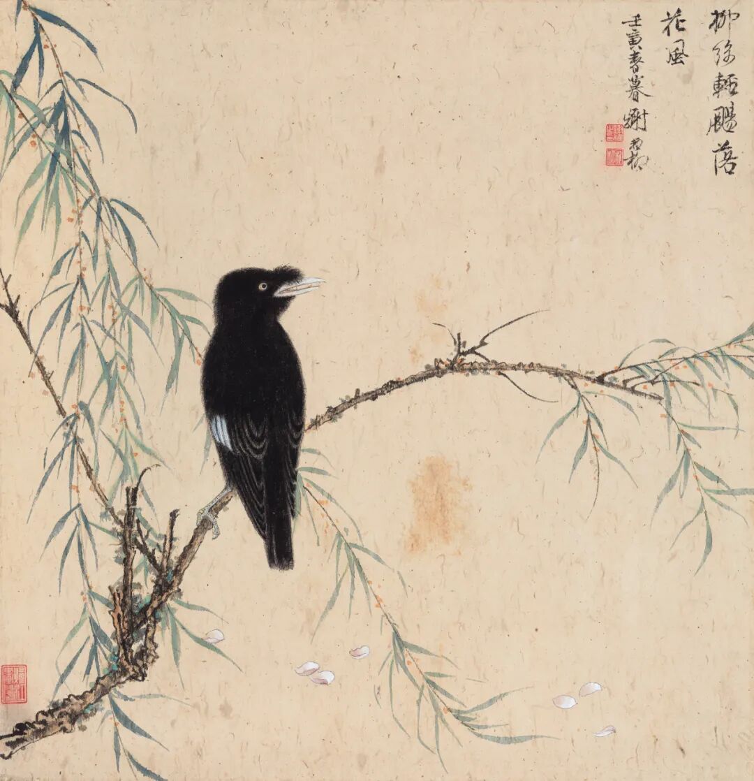 【题识】芳树春融绛蜡凝,春风寂寞掩柴荆。画眉庐女娇无奈,龋齿孙娘笑不成。已怕宿妆添蝶粉,更堪暖蕊断蜂声。一般疏影黄昏月,独爱寒梅恐未平。一穗芦鞭一穗尘,西园红艳眼中新。帽檐分去家家喜,洒面飞来片片春。梅柳几曾同故事,樱桃才得缀芬辰。荒城此日肠堪断,老却探花筵上人。游雁荡过沪闻有绿鸠,趋车往觅,已为人得去。作此并录元好问诗。非闇。【来源】北京保利2009年仲夏拍卖会,lot3739。