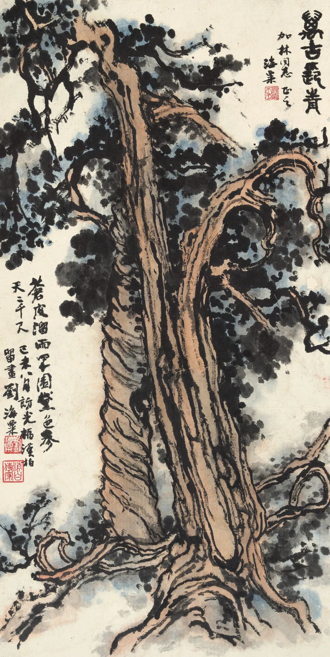 1.苍皮溜雨四十围,黛色参天二千尺。己未八月访光福汉柏留画,刘海粟。【说明】LOT2702-2710为秦加林同一上款,由其家属提供。