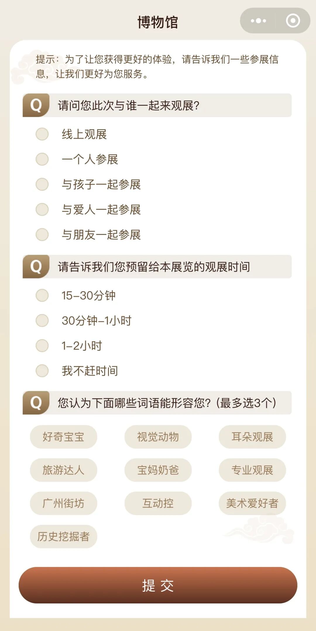 制作团队诚邀您参与智慧导览使用体验问卷调查,与我们分享您的建议和意见。