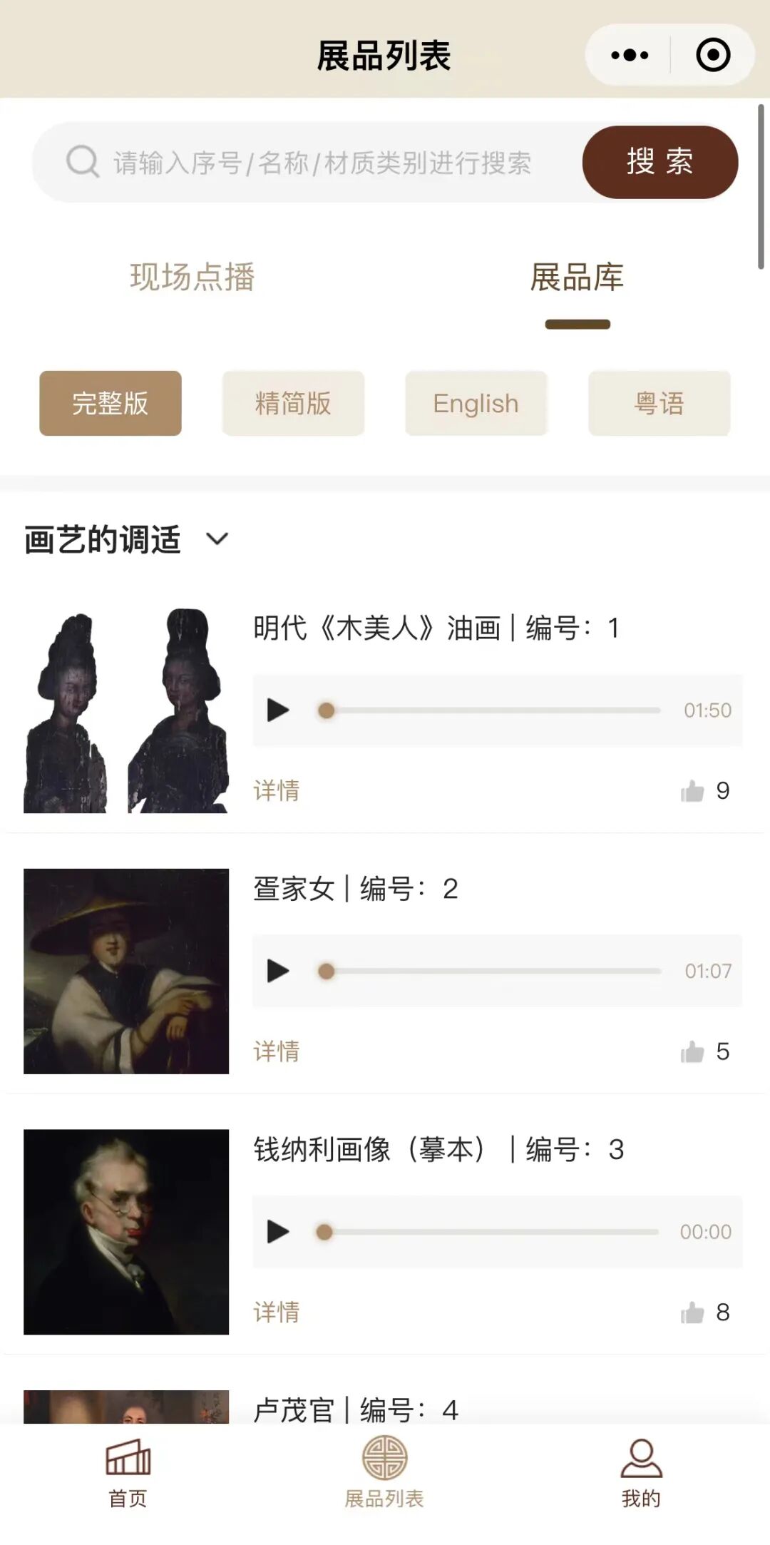 导览提供现场点播、展品库展示、展品搜索三种交互式,您可以点播或检索展品来听讲解。导览准备了普通版和适合孩子们的儿童版讲解,并在普通版里面还包含了完整版、精简版、英语版和粤语版,任您选择哦!