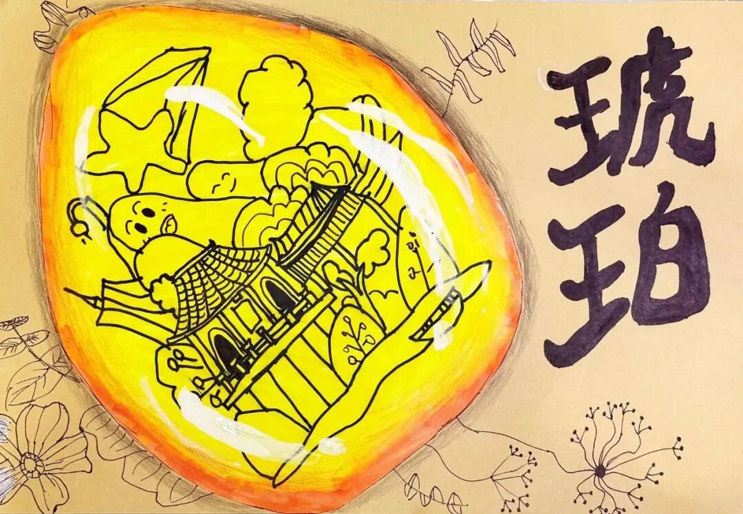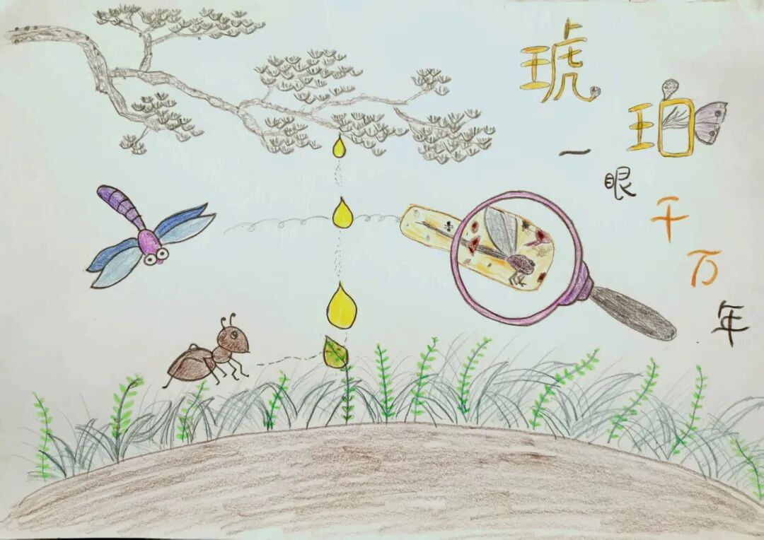 把琥珀及其包裹的动植物或物品绘画出来,将作品图片上传至活动页面,并用文字介绍自己所绘画的琥珀故事。
