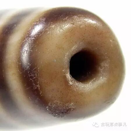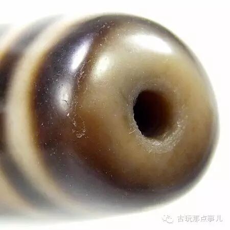 有人说西藏老天珠的两端是白色才是真的老天珠,这实在是无稽之谈.由于时来以久而大部份的天珠皆用于佩带之用途因代带相传长久佩带磨插损耗把两端之深色部份磨损掉之关系方突显内部的白色部份主材体故老天珠之两端才会是白色的.