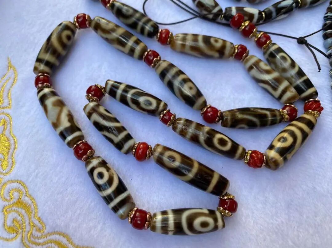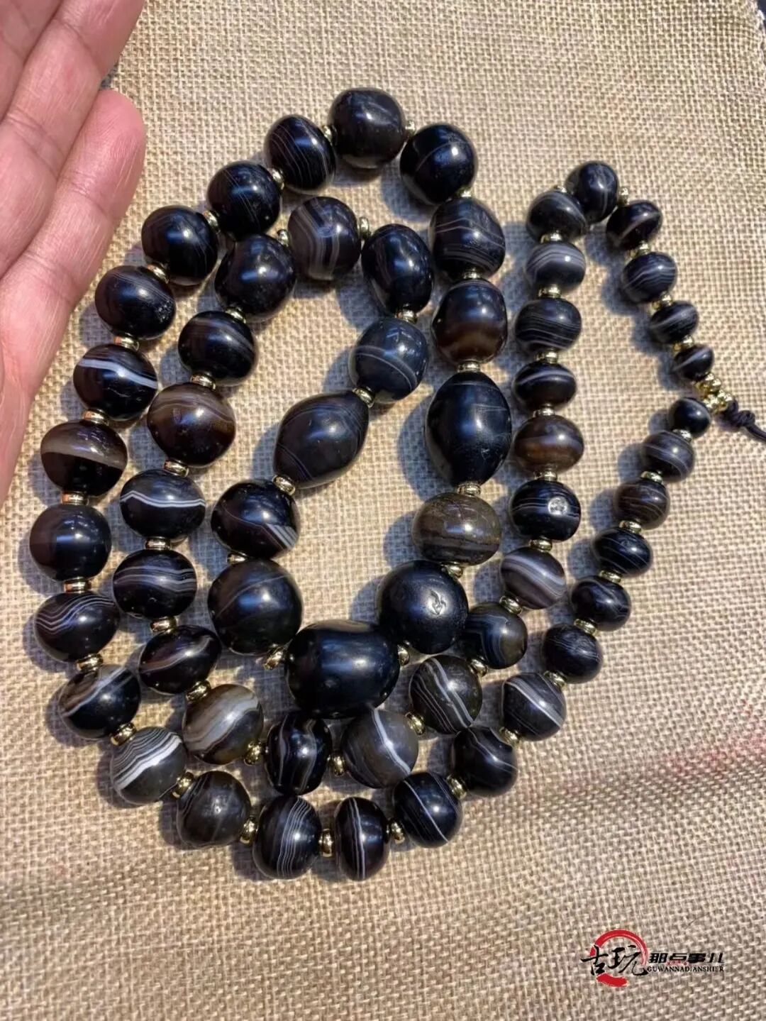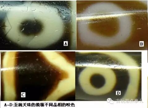 有的老天珠也是完好如初还是保有原来的色泽并非两头白才是真的西藏老天珠.相对的也可从天珠之磨损的斜角度数而去判断其长期以来佩带珠串的长短与天珠位置...等,因每个人所拥有的天珠大小/珍贵程度因人而异配成串珠时位置惯性的不同而造成.