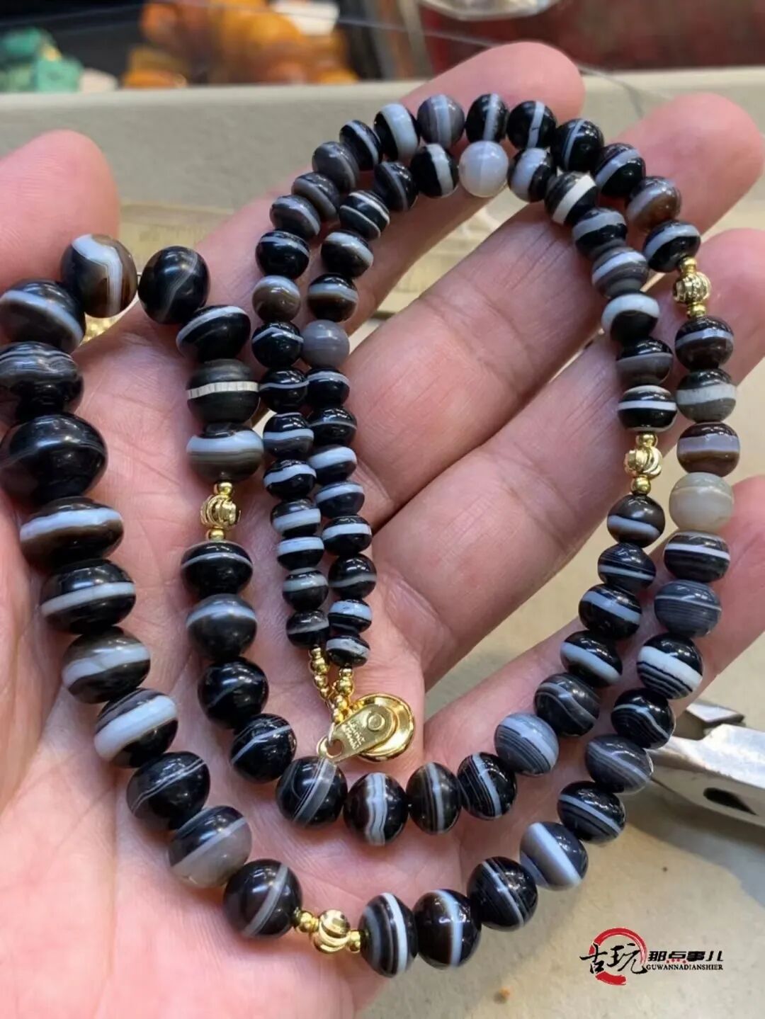 所以辨别最好不要单一,要完整的看;不过老天珠的皮壳温润深度感,是目前都还没有办法仿的;除了以上的辨识方法外,请购天珠不要以为老的就好;很多的老天珠表面磨损严重,有些已模湖不可辨或受损严重,实已无收藏价值。若只要老的东西,那路边的石头不都已是千万年了,检石头就好了,何苦花那多钱。