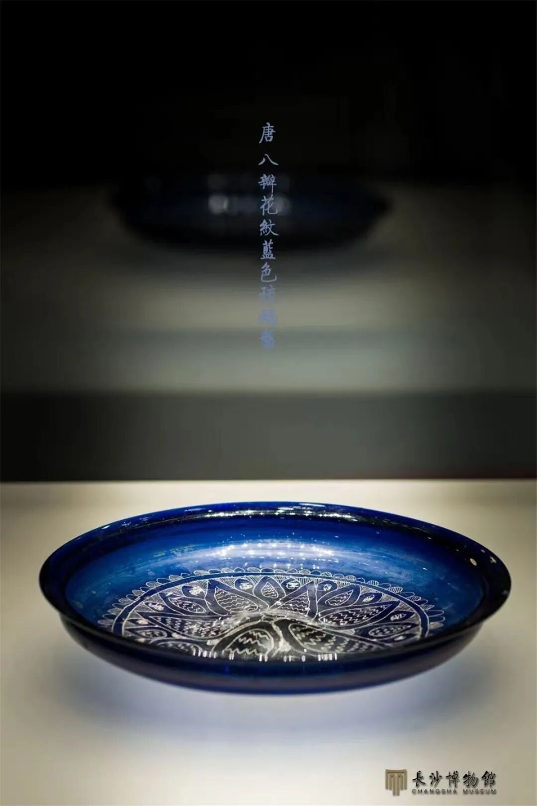 唐 八瓣团花纹蓝色琉璃盘