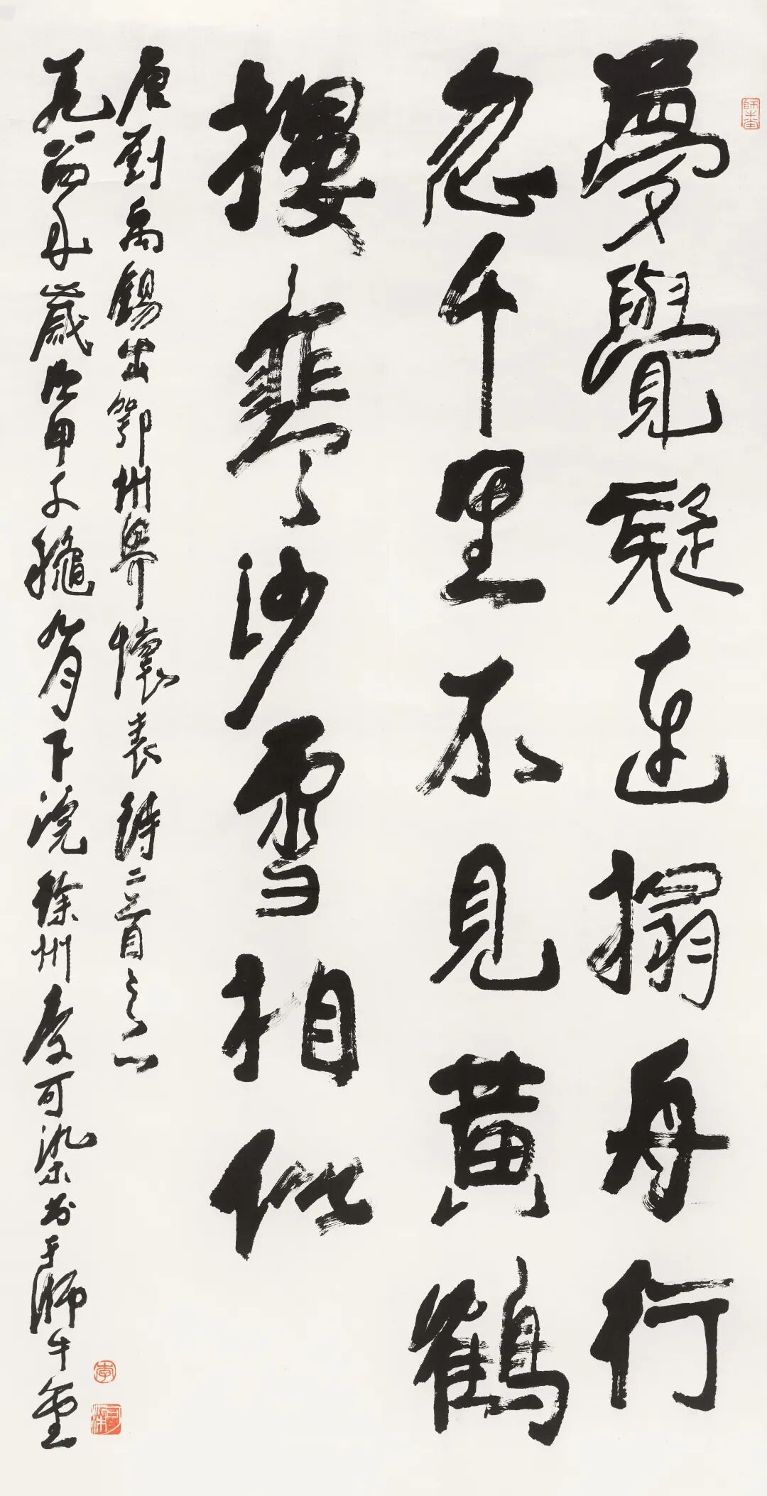 款识:唐刘禹锡《出鄂州界怀表诗二首》之一。一九八四年岁次甲子秋九月下浣,徐州李可染书于师牛堂。