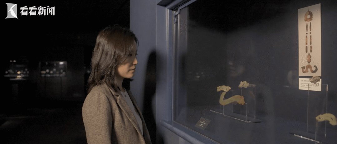 春秋战国时期,这样的玉龙佩通常不是用来单体佩戴的,而是作为玉杂佩的组件,和玉环、玉勒子等组成一串,佩挂在腰部。上海博物馆工艺研究部副主任、副研究馆员谷娴子介绍,玉龙佩打孔的位置颇具巧思,用绳子穿系悬挂起来,两边一定是平衡的,这也是重要的鉴定依据之一。