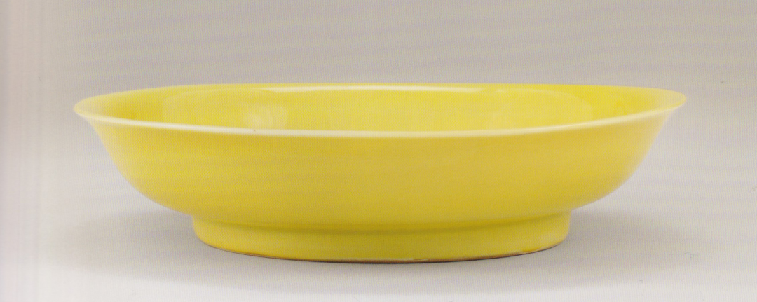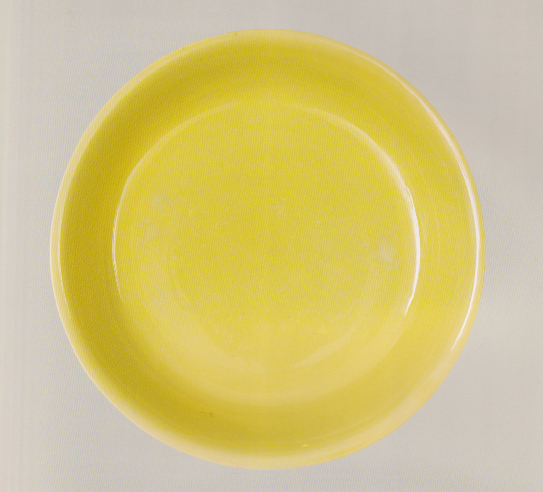永乐时期,景德镇窑工们的窑技与创新力远远超过了他们的前辈。这可以从景德镇御窑厂永乐时期遗址出土的各种各样的瓷器残片中得到证实,它们不但造型多样,装饰技术和花纹也非常丰富。这件黄釉盘极其罕见,它是景德镇首次使用单一黄色釉为饰的瓷器。在此后500年的中国封建社会时期,黄釉成为宫延瓷器的专用釉色。可能是因为技术上的难度,或因为品味偏好的原因,15世纪早期仅成功生产过数量极少的素色黄釉盘,能流传至今的则更为稀少。这种盘子需要入窑煅烧两次:首先是在摄氏1280°C ~ 1320°C烧成素胎;然后施黄釉第二次以低温烧造,使盘子内外壁所施以铁元素为呈色剂、铅为助熔剂的色釉玻化。该盘的圈足内施一层透明薄釉,显示出典型15世纪早期瓷胎的特点。