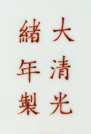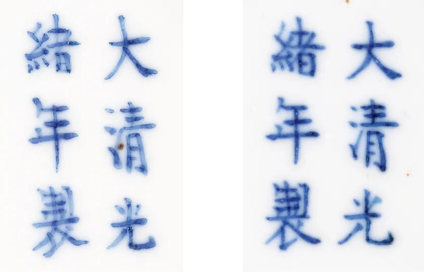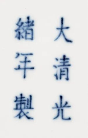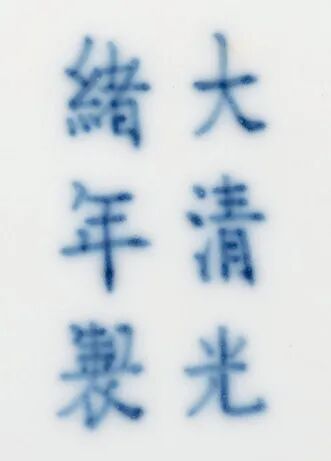 作品胎体细密,釉面温润,画工精湛,器物规整而大气。此类题材的瓶件在光绪官窑瓶件中较为少见。底书青花“大清光绪年製”六字楷书款。光绪官窑。