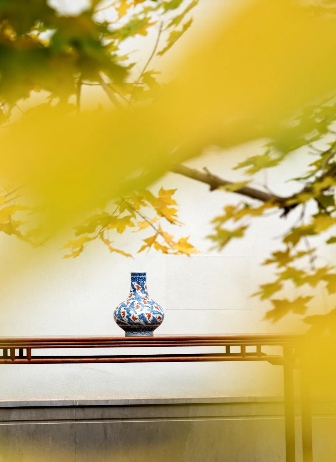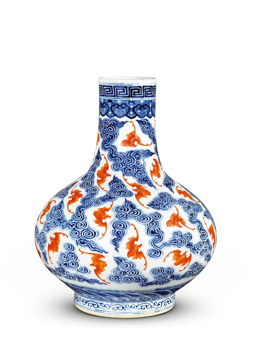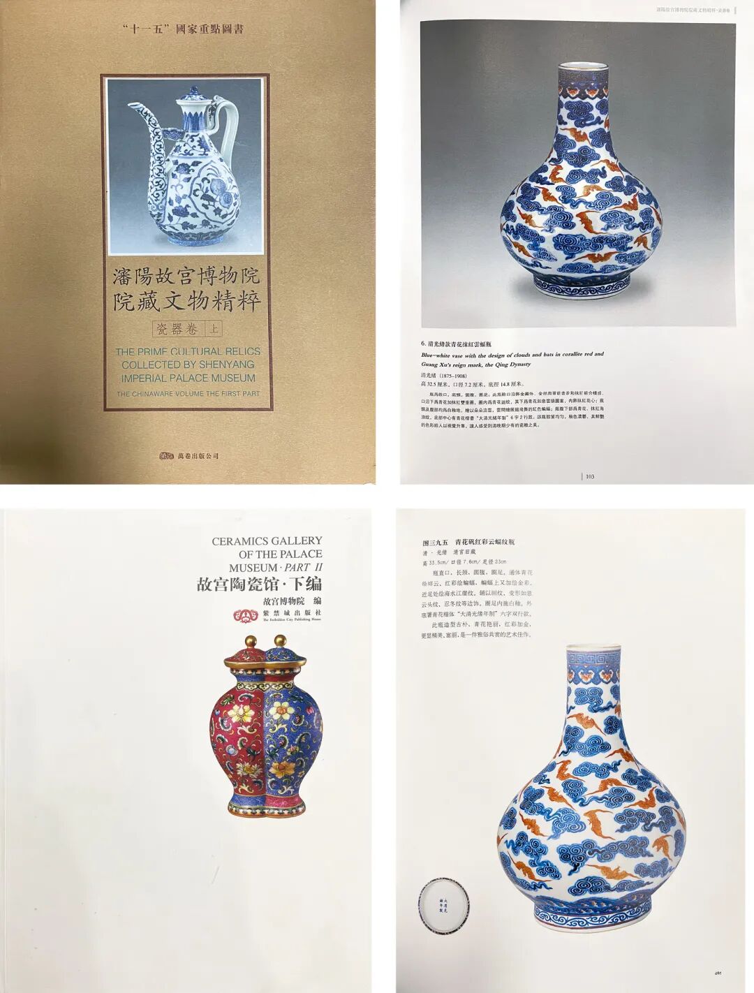 5.故宫博物院藏宣统款青花矾红彩云蝠纹直颈瓶,见故宫博物院网站,文物号:故0015648。