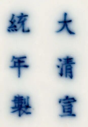 说明:宣统一朝三年,官窑瓷器烧製不多,传世更稀少。但质量均较高,尽管同类品种在样式、釉、彩等皆仿效前朝,但品质更精细,百蝶赏瓶就是其一。底书青花“大清宣统年製”六字楷书款。宣统瓷有矾红及墨彩款等,青花款体最为难得。