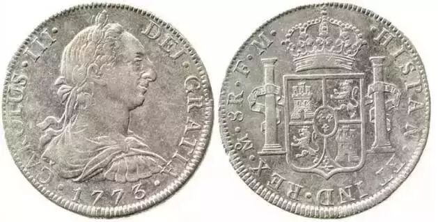 地球双柱其是用机器铸造,成色形制标准,图案精美,携带方便,完全可以按枚计值。毫不夸张的说,银元能在乾隆年间取代银两成为沿海地区记账标准,地球双柱在华的大量流通有着开启鸿蒙的功劳。