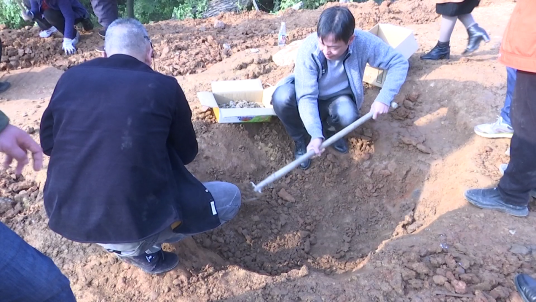 西塞山区文旅局等有关部门的工作人员一起对发现古铜币的位置及周边进行发掘。在发现铜币的周围,工作人员们只要用锄头挖下去,便能挖出几枚、甚至几十枚数量不等的一堆铜钱。