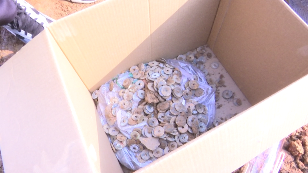 施工人员发现了数十枚古铜币
