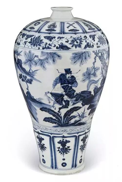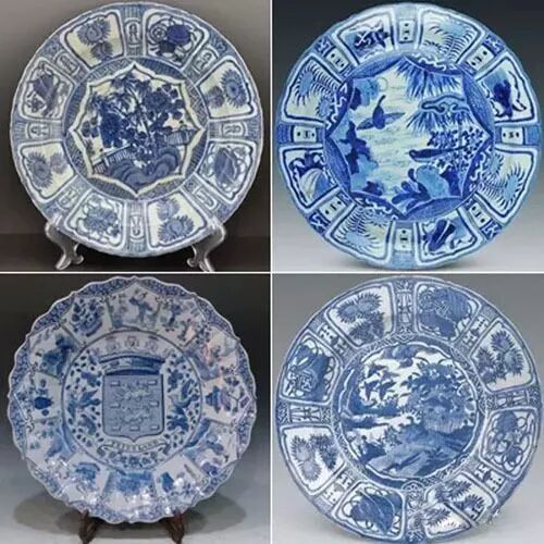 有了高温硬质瓷,有了顶峰的纹饰绘制工艺和画家,青花瓷的出现只剩下一个最后推动了。因为,在之前的中国,钴蓝色纹饰并不流行。唐宋时期流行的釉下彩纹饰,大多是褐色、黑色。蓝色纹饰在民间并没有多少人接受。这个推动适时就来了。随着旭烈兀西征的胜利,蒙古人统治了中东大片阿拉伯文化的地区。这个地区的居民,就喜欢蓝色的花纹装饰,他们尤其喜欢当地出产的颜料那种发色蓝中带一点紫的蓝色纹饰。他们向中国的制瓷业发出了订单:在这个需求的推动下,青花瓷诞生了。也因此,元青花开始就用的是进口的蓝色颜料:发色蓝中带一点紫的“苏麻离青”。以满足主顾的爱好口味。这也是元青花的精品大量保存在中东阿拉伯地区,国内反而并不多见的原因。实际上,直到明代前期,青花还没有被普通人接受,大部分只是为了出口而生产。明朝来了,情况一下发生了改变科举恢复,读书人又有了上升通道,元代短暂的绘画高手进入制瓷业的时代过去了。在青花上绘制图案的,又变成了普通工匠。明代的青花纹饰,就很快走向了固定纹饰的绘制。固定纹饰是匠人可以反复使用从而熟练掌握的,相比之下,其艺术水平大大下降了,但相比之下却带来了一个好处:可以大规模批量复制生产,产量大大增加了。而明代的青花遇到了新情况,随着中东的战乱和明初的海禁,来自中东的订单大大减少,于是在明初短暂地还使用了中东进口的“苏麻离青”后,国产青料取代了进口货。中东的土豪没了,但欧洲人来了。随着达伽马绕过好望角开辟了东方航线,欧洲人进入了东亚世界的海上贸易市场。很有意思的是,欧洲人也喜欢蓝色花纹装饰的瓷器。特别是青花瓷是他们从没见过的高温硬质瓷,一下就打动了欧洲人。于是欧洲贵族取代了中东土豪,成为青花瓷新的海外大单提供者。但欧洲贵族与中东土豪在口味上有点不同,不大喜欢发紫的蓝色,而是喜欢海水那样的蓝色。于是从明代中期起,随着外销瓷器的色调转变,青花瓷的总体色调也开始转向符合欧洲人口味的纯正海蓝色。那时候葡萄牙大帆船将整船的青花瓷遇到欧洲。万历时,荷兰人俘获了一艘装载有十万件中国瓷器的葡萄牙大帆船,并将瓷器在阿姆斯特丹拍卖,引起了轰动。因为葡萄牙人打死不说产地在哪,于是只好用船将青花瓷命名为“克拉克瓷”。当然,这还是中国的大单外销青花瓷。长时间的大单青花瓷生产,使得青花瓷在外销之外,有了进入中国百姓生活的机会。虽然艺术性下降,固定装饰花纹中各种吉祥图案也满足了普通民众的审美。一件便宜但坚固耐用,还绘有吉祥图案青花瓷,对于普通百姓来说,即满足了使用的需求,也满足了审美的需求。因此,原本在国内并不流行的青花瓷逐渐风靡大江南北长城内外,被广泛接受了。康熙时,以“清四家”为代表的山水画派受到追捧,王公贵族喜爱中国画风格的青花纹饰,并成为主流社会风尚。于是在这一时期青花瓷装饰中又出现了元青花那种追求中国画效果的风尚。在技术上,为了追求对中国画的模仿,随着发色青翠艳丽的产自云南的钴蓝原料“明珠料”的发现和使用,青花瓷制作工匠通过使用几种产地不同产地的青花料绘制青花纹饰,使纹样颜色产生更多的色阶变化的办法,按照通俗的标准青花纹饰中出现五种不同色阶变化即为纹饰精品,色彩变化号称“墨分五色”,有五个层次的色阶,所用青料有"头浓、正浓、二浓、正淡、影淡"之分。一般绝大多数青花瓷的纹饰都为二到三个色阶,康熙时最精彩的作品色阶多达十三个,甚至在一笔一划中也能分出深浅不同的笔韵。青花山水人物图,花鸟图等,无论远山近水,层峦叠嶂,均富有层次的节奏感、立体感,结合晕染法的使用,使其更接近和达到国画题材的表现手法,犹如水墨画。这样,康熙青花瓷成功实现了中国画画风和表现力的回归,攀上了青花艺术史上的第二个高峰。就这样,青花瓷实现了从国人到洋人,从宫廷贵族到普通百姓,从贩夫走卒到文人墨客的广谱吸引。从而,真正成为代表中国瓷器的“国民瓷器”。![]()