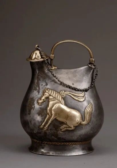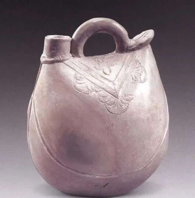 唐代白瓷皮囊壶,1956年陕西省西安市西郊白家口出土,现藏于陕西历史博物馆