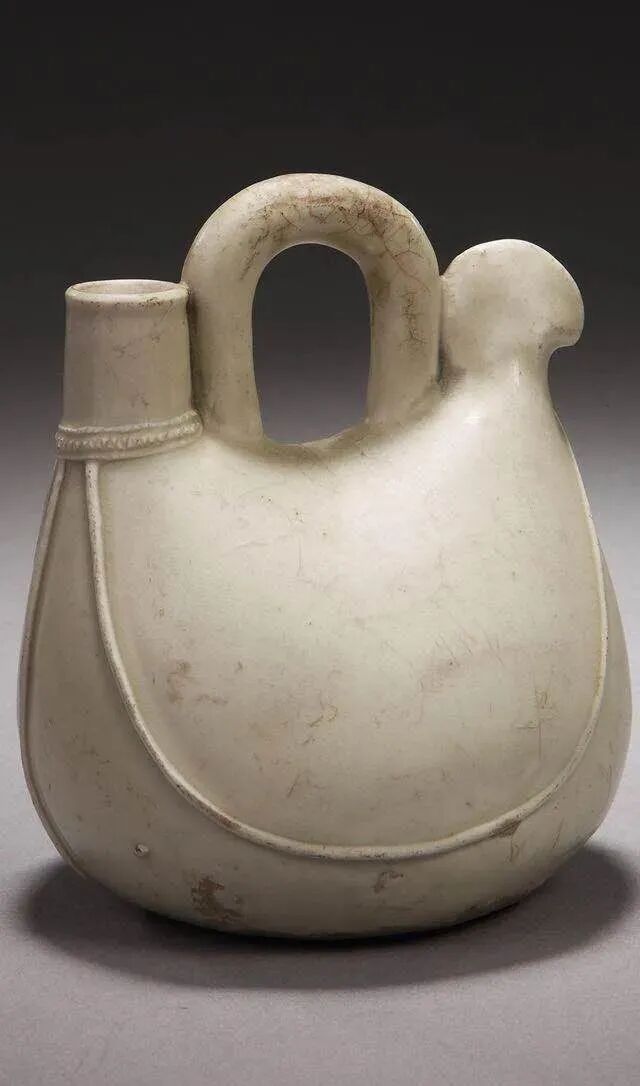 唐代白瓷皮囊壶,1980年河北省临城县祁村窑址出土,现藏于河北省临城县文物保管所