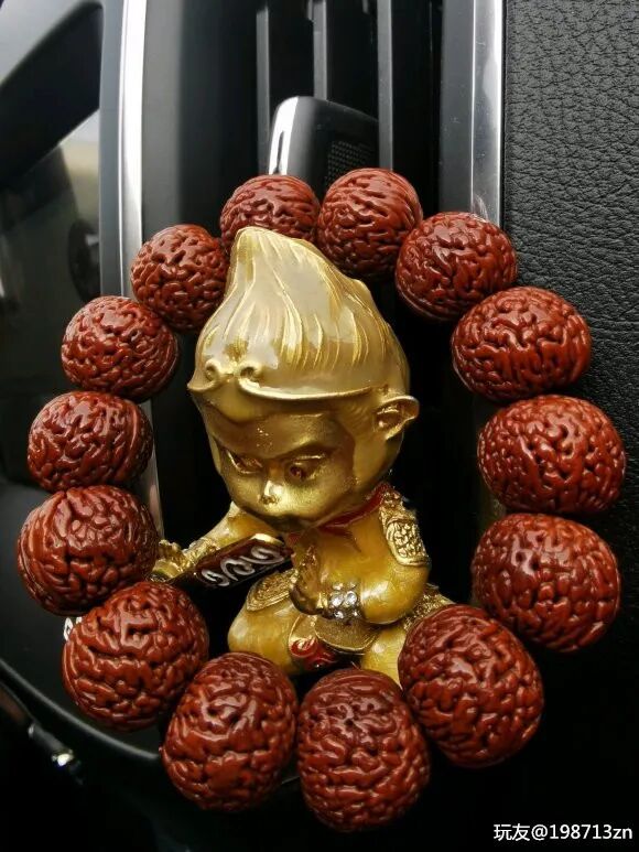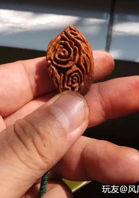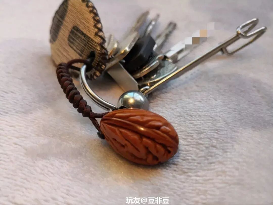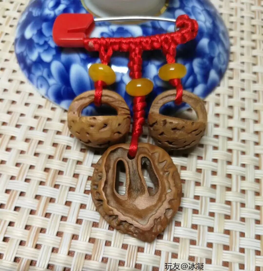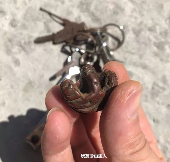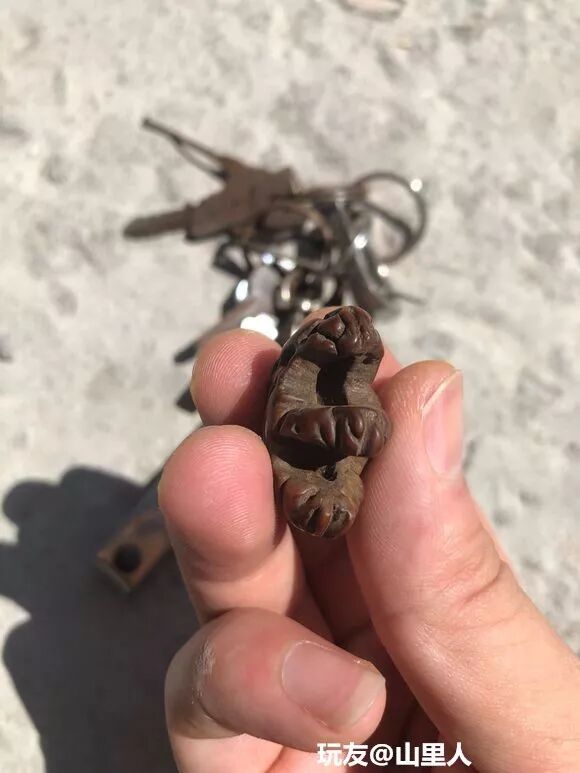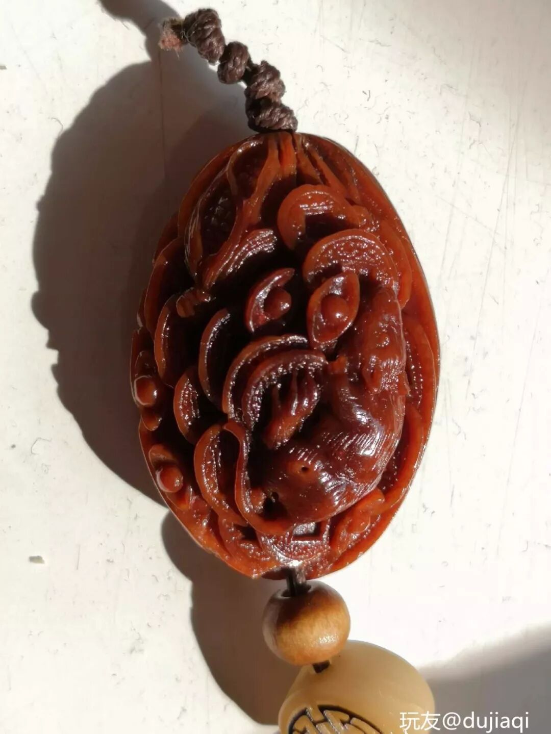 曾经在朋友圈,看见过玩友晒出来的,由桃核经过简单雕刻而成的,辟邪挂件: