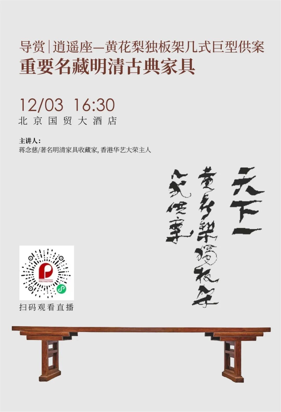丨逍遥座—黄花梨独板架几式巨型供案 重要名藏明清古典家具