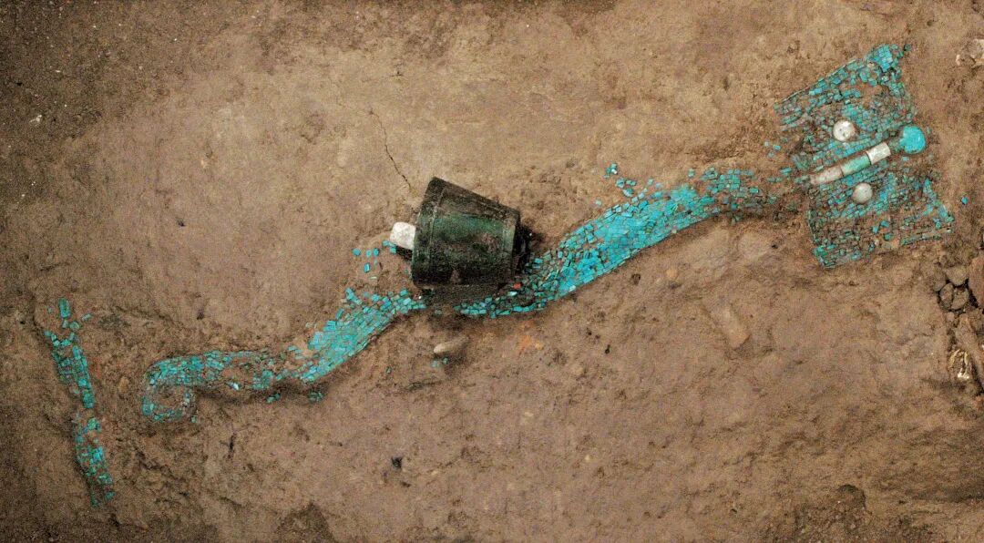 我国早期二里头(疑为夏朝)遗址就出土了绿松石龙型器和其他绿松石器,极其精美,堪称孔雀蓝色文物瑰宝。除了绿松石以外,孔雀蓝文物还有琉璃器。这种琉璃并不完全是我们现在的玻璃,而是一种人造宝石,又被称为佛家七宝之一。对于琉璃器类文物而言,今人最熟悉的莫过于蜻蜓眼。这是一种战国时期开始流行的琉璃珠子,目前在古珠收藏界颇受青睐。![]()
