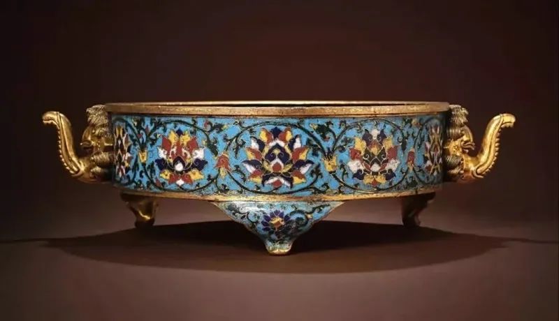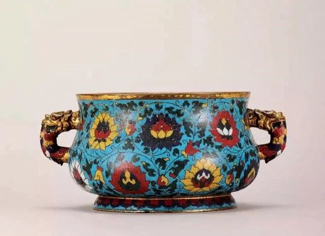 最受皇帝宠爱的孔雀蓝文物非铜胎掐丝珐琅不可。这种在铜胎上用铜丝焊接出花纹,再在花纹内填满各色珐琅釉的铜制文物,由于大多大面积使用孔雀蓝为地子,又由于明代景泰皇帝时期制作最精,又被民间俗称为景泰蓝。景泰蓝文物其实在元代就已经出现在宫廷了,不过当时称为“大食窑”,因为这玩意本来就不是中国制造的,而是来自遥远的阿拉伯地区。由于唐朝我国把中东阿拉伯帝国称为大食(又分为黑衣大食和白衣大食),后来就一直沿用大食这个名称到元代。![]()