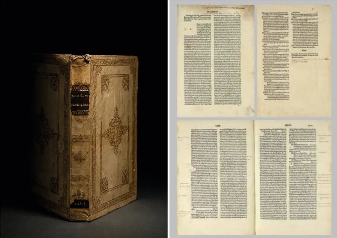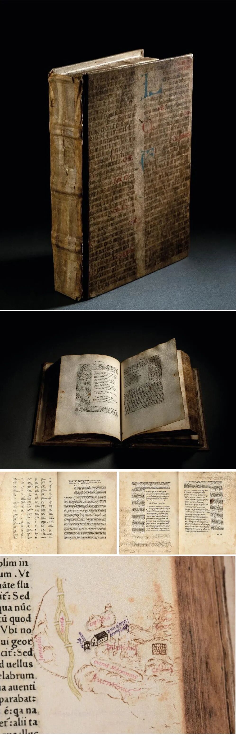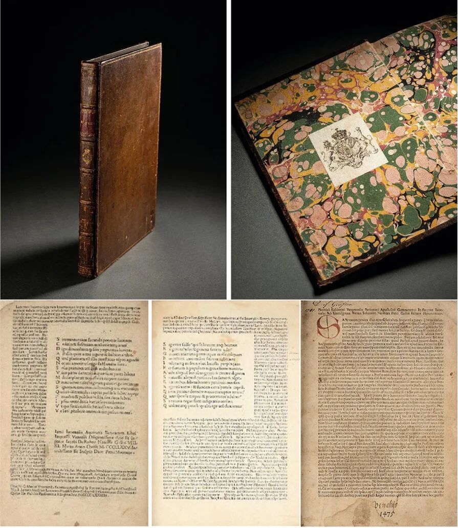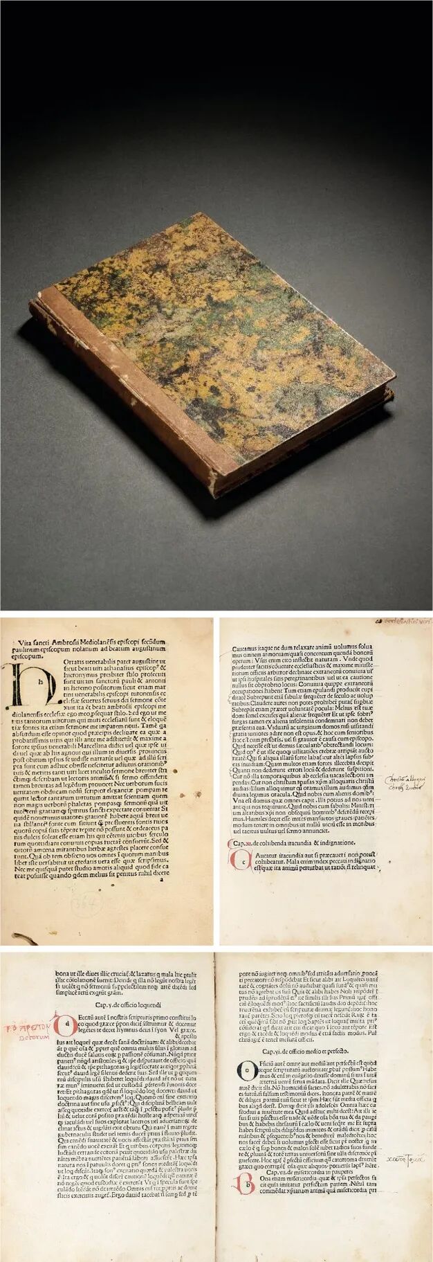 是书双栏53行,后版权页有拉丁文“ImpressumVincentiae per Symonem de gabis Papiesem.annosalutis.M.cccc.lxxxvii.die.xx.decembris.”确切出版日期为1487年12月。Laurence Claiborne WittenII旧藏,1985年由Swann Galleries拍卖。