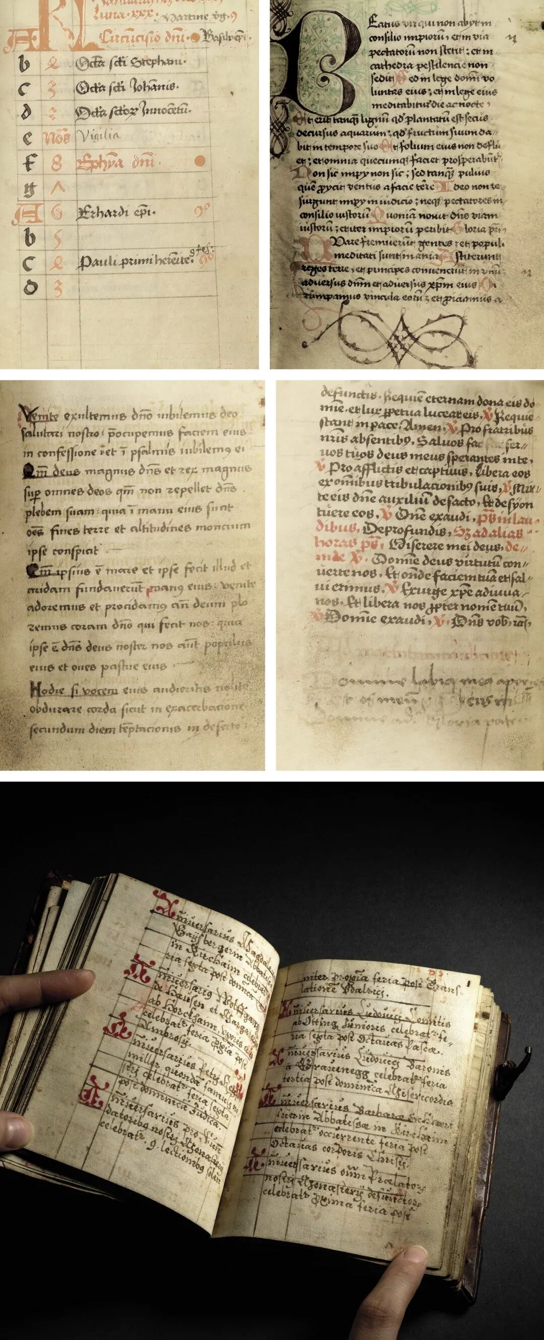 该书为13世纪晚期的羊皮纸手稿日课经,内含《圣经·诗篇》,赞美诗和圣经选段,是用于日常祈祷的祈祷书,每天固定时刻朗诵,一年中每天都不间断。自罗马帝国晚期开始,教会使用各种形式的《日课经》。