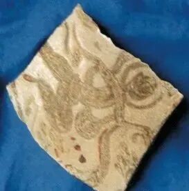 无独有偶,笔者于1999年在南京朝天宫古玩市场上发现过一块吴末西晋初的淡青釉黑褐彩云龙纹残盘片。它的绘画风格与两汉六朝的石雕、砖刻、漆画云龙纹十分相似。后经科学测试表明,它系釉下彩,以含锰稍高的氧化铁为着色剂,烧成温度1180℃。根据热释光测定,其年代约1600多年。