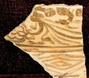 孙吴青瓷黑褐彩飞天纹残罐片