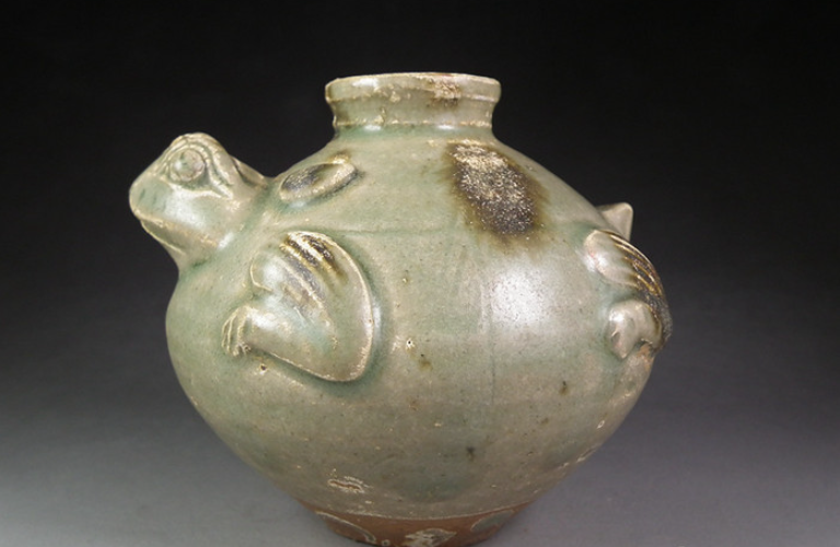 青瓷点褐彩蛙形小罐