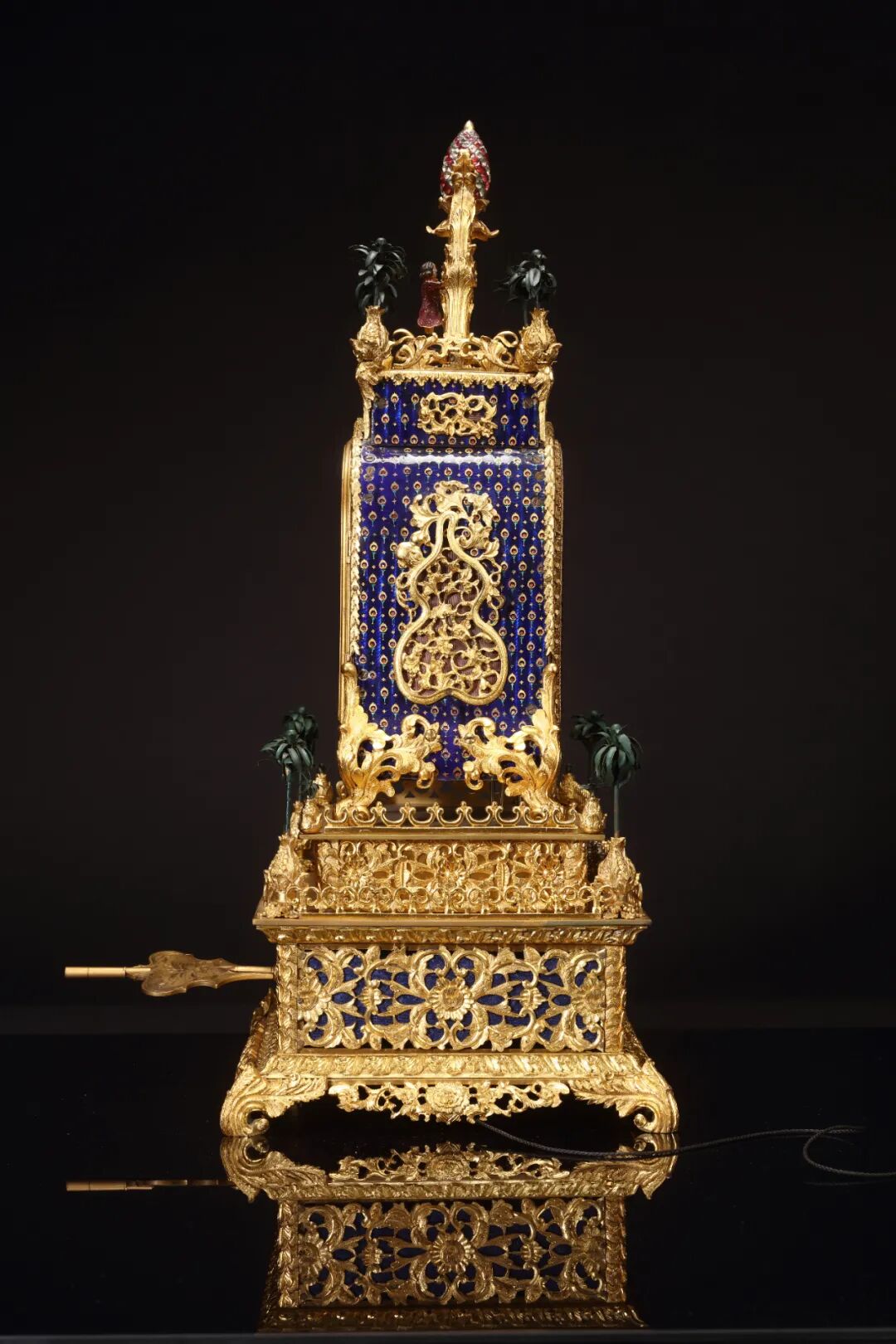 清乾隆 御制铜鎏金转花转水法大吉葫芦钟(局部)