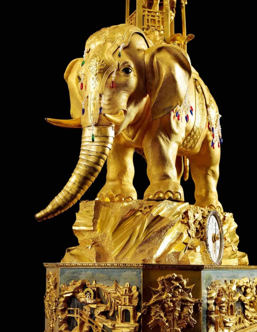 18世纪 铜鎏金太平有象水法转花音乐自鸣钟(局部)