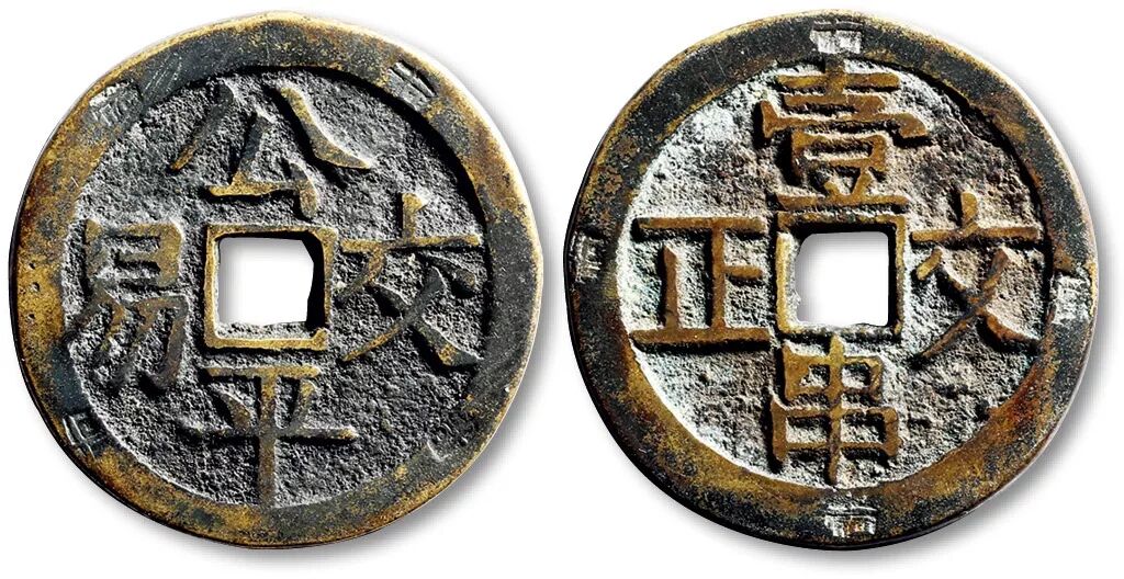 ▲清“公平交易”背“壹串文正”方孔代用钱
