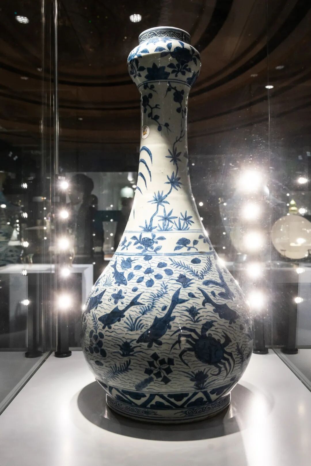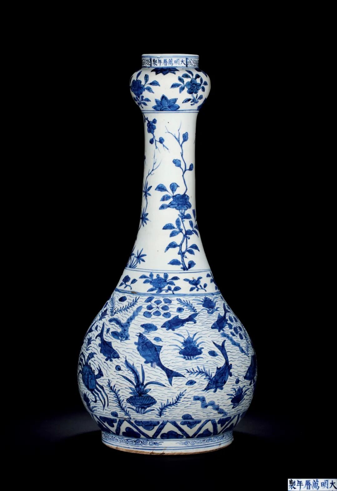 明萬曆 青花海藻魚蝦蟹紋蒜頭瓶