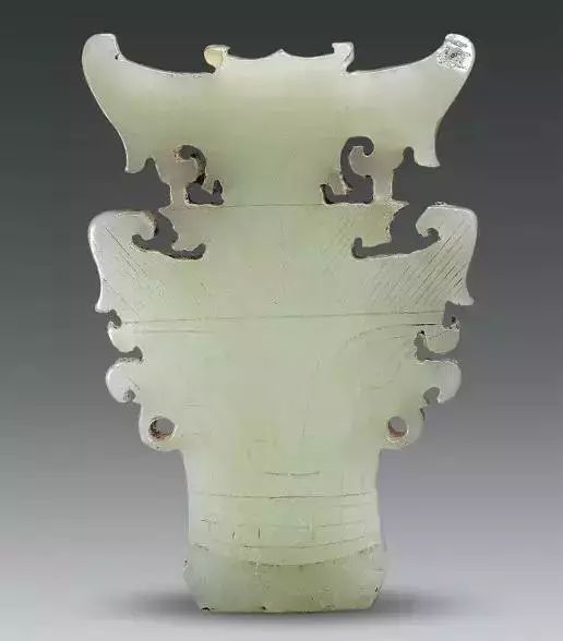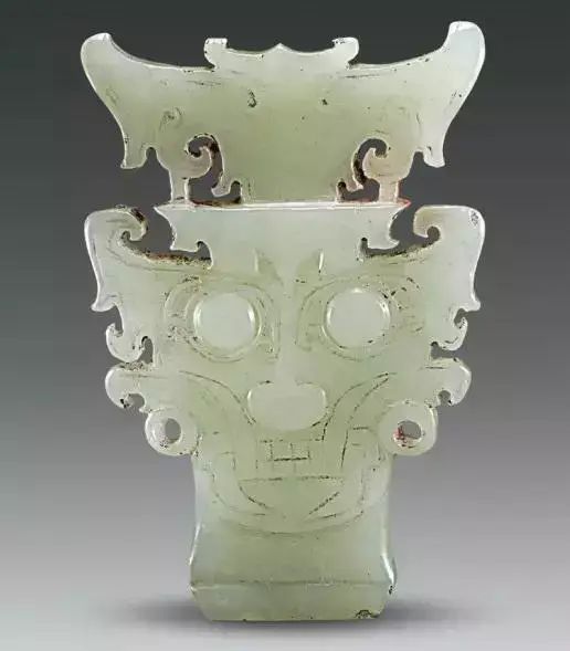 上图为美国弗利尔博物馆收藏的石家河文化玉人头像,这件玉人头像很有特点,面部器官采用石家河文化玉凤那种剪影式缕空构图。