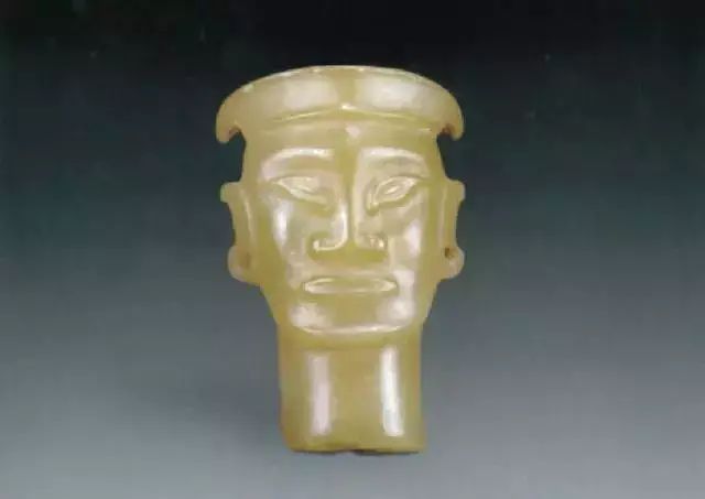 上图为石家河文化玉人头像,肖家屋脊出土,黄绿色玉质。