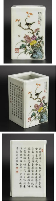 北宋宋徽宗创工笔重彩院体花鸟画以来这种华丽重彩的绘画之风一直薪传到清末,在瓷器上这种画风是程意亭将其传承到瓷器上并将其发扬光大。