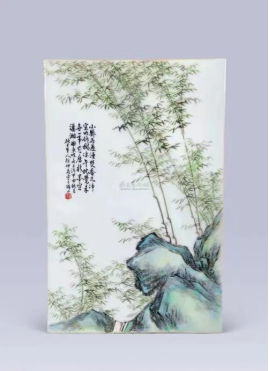 徐仲南,1872-1952年,江西南昌人,名陔,字仲南,八友十君子最年长者,享年80岁,1920年受聘南昌丽泽轩,负责仿古类瓷器,1929年来景德镇,1930年受聘于江西瓷业公司,1931年加入珠山八友这个艺术团体。徐仲南是以为技术全面的画家,人物、山水、华年、松竹样样精通,晚年更是受苏东坡和清末画家戴熙的影响,由人物、山水转画竹子。他的竹子很有特色,细竹细叶,但细看之下他纤细的竹节就是一根钢管,坚毅、刚强,又具有竹子的强性,他的竹子都配有山石,布陈设景十分考究,强调点、线、面的高度融合,王大凡在题徐仲南的诗句写道“宿昔曾为鉴古家,而今把画作生涯,苍松翠竹时人重,闲入庭院喜种花”。