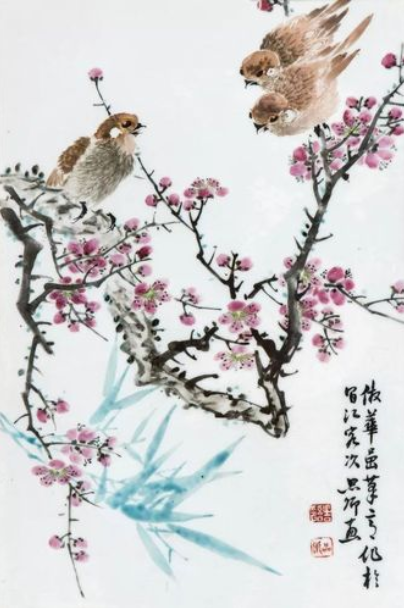 徐仲南的儿子徐天梅不仅是画虎名家,而且花卉翎毛绝不会比他的大舅哥刘雨岑差,徐天梅淡泊名利,与先父王晓帆过从甚密,不是兄弟胜似兄弟,在王晓帆落难之时只有好友徐天梅和徐文相伴左右。从1911到1949年,民国只不过38年,在这38年的历史长河中,波涛涌动,人才辈出,群星璀璨,也许是“五四”新文化运动的推动,也许是中国瓷器在生与死的考验中凤凰涅槃,浴火重生。