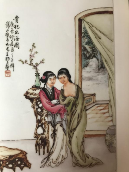 我不同意浅绛彩在辛亥革命前就结束了的论点,辛亥革命之后,汪晓棠、潘匋宇就画过浅绛彩作品 ,王大凡、汪野亭也曾画过浅绛,只不过他们都转向粉彩,因为粉彩市场始终比浅绛彩市场热,深受藏家喜欢。
