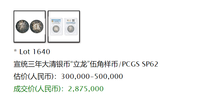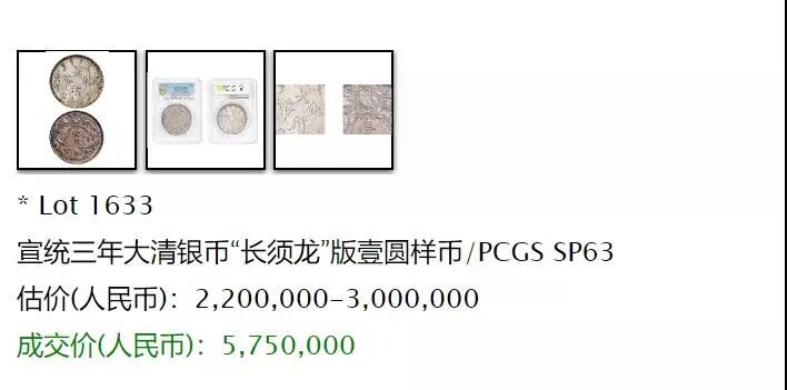 TOP1宣统三年大清银币“长须龙”版壹圆样币